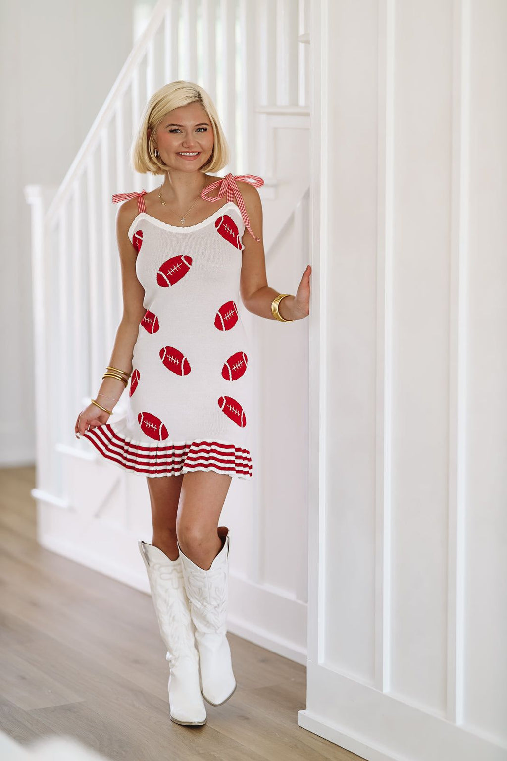 From off-white mid length dresses that can be dressed up for a date night at your favorite trendy restaurant to eyelet mini white dresses perfect for a boat day or day shopping. Bring out the statement jewelry to complete your white dress outfit.