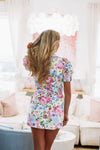 Bouquets of Blooms Mini Dress - White, Pink and Purple