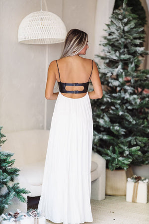 Caviar Dreams Maxi Dress - Ivory and Vegan Black Leather