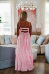 This maxi dress is the perfect choice for any special occasion. The beautiful fabric drapes elegantly making it a stunning statement piece. It's comfortable enough to wear all night long, but still sophisticated enough for formal events or date nights. Don't forget the double straps and cutout in the back!