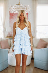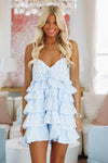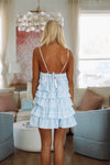 This mixed gingham dress has tiered ruffles and a tie back detail.