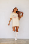 Can't get enough of our graphic tees? We are adding to our collection and are loving this Coors Banquet Graphic tee that can also be worn as a t-shirt dress when sizing up! This 100% soft cotton tee is a faded yellow with the original Coors emblem on the front. Perfect concert tee or concert t-shirt dress. Perfect to wear over you swimsuit right out of the hot tub. Perfect for with cut-off shorts or leggings and a cardigan.