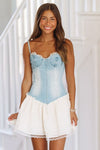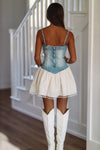 Did someone say trendy? We love the denim and fabric mix on this mini. The lace trim is so cute!