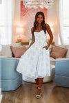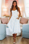 Cute Floral Chick Midi Dress - Blue and White