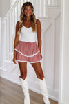 This fun ruffle checkered mini skirt is perfect for concerts and gamedays!