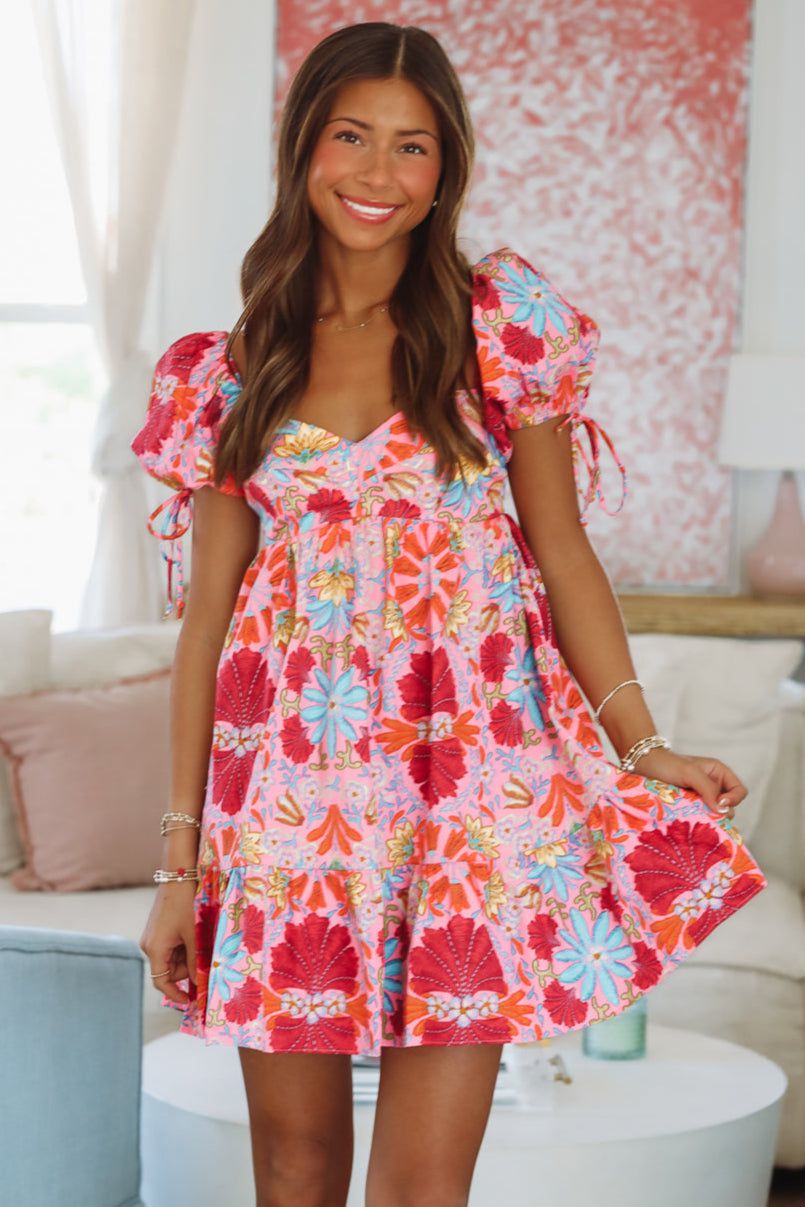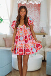 Don't Forget Me Mini Dress - Pink, Red and Blue