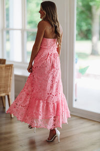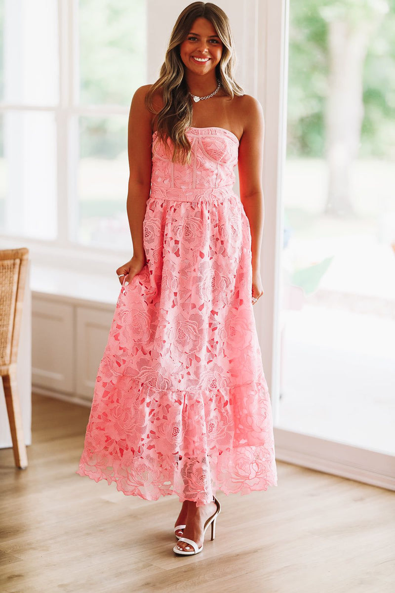 High Quality Embroidery Eyelet Maxi Tube Dress! We love the corset style top and the flare to the skirt!