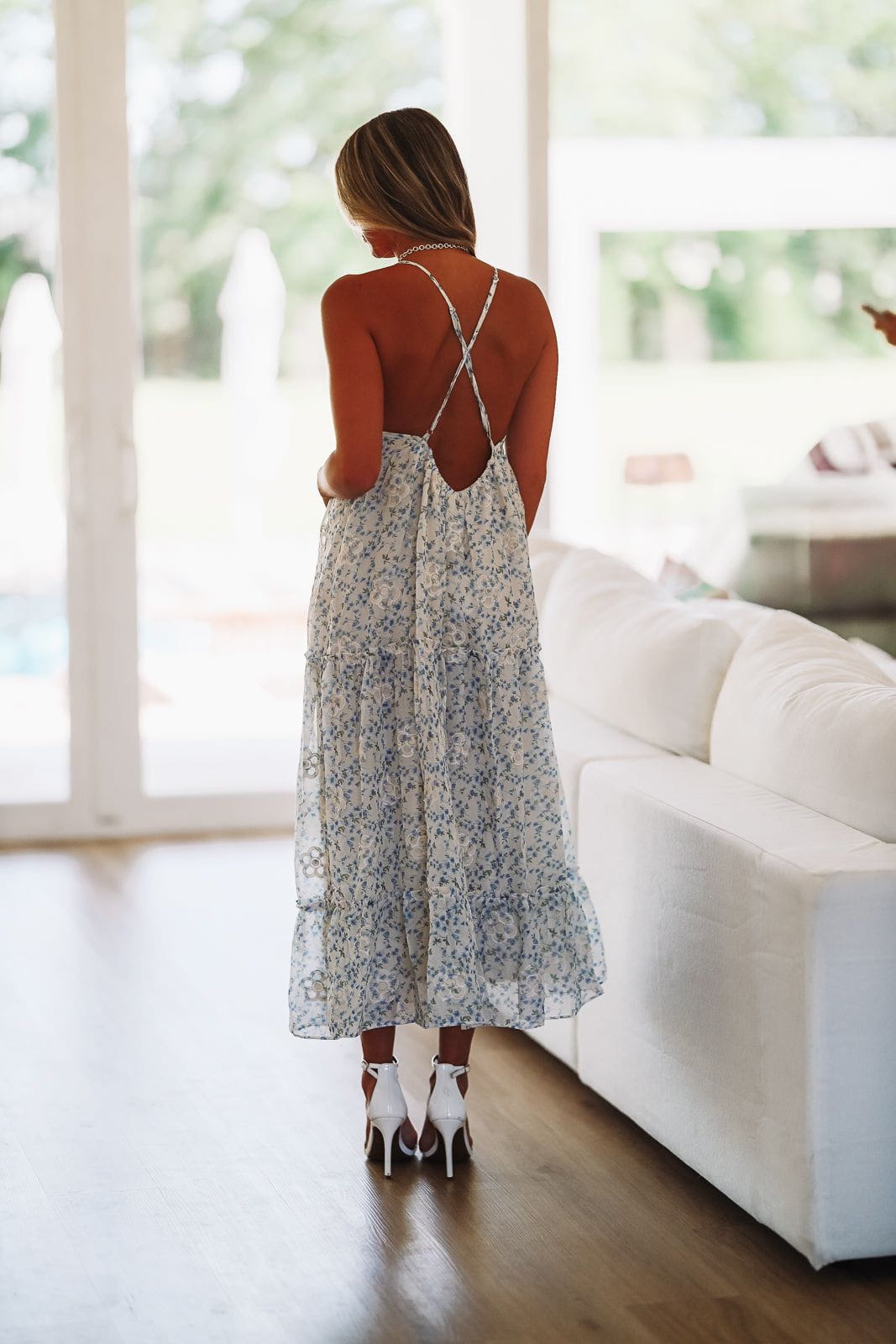 The fairy godmother gifted you this cute maxi! We love the delicate floral detail and the adjustable straps.