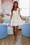 This floral printed ruched tiered mini is so stylish. We love the adjustable shoulder ties.