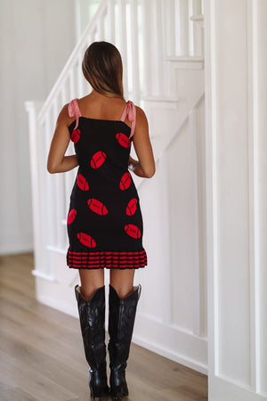 Football Ribbon Mini Dress - Black and Red (FINAL SALE)