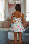 This romper dress can be worn to so many events. We love the colorful floral pattern and adjustable straps.