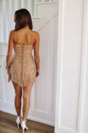 The rhinestones on this powermesh slip dress sparkle and shine. We have it shown with a nude bodysuit under it.