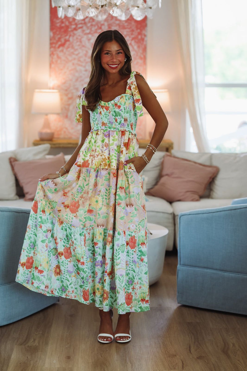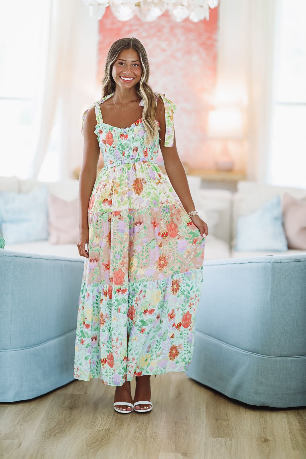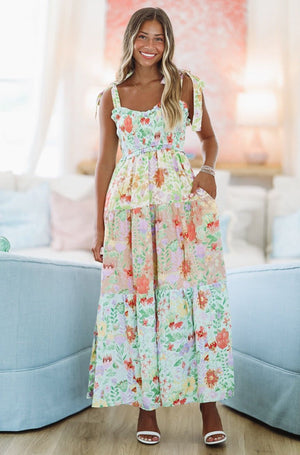 Garden Dream Maxi Dress - Green, Purple and Pink