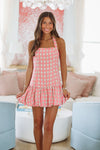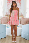 Gingham Lost in Thought Mini Dress - Pink and Taupe (FINAL SALE)