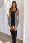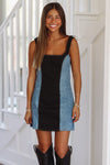 Give It a Chance Mini Dress - Denim and Black (FINAL SALE)
