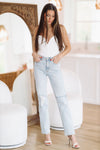 The absolute PERFECT jeans. These straight leg, denim jeans have pockets, button and zipper closure and ripped knees. You can literally wear these with anything. Dress them up or down and go out on the town.