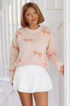 Happy You're Here Bow Sweater - Pink