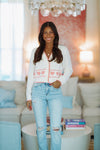 We love this cropped cardigan. The pink hearts and button details are so cute.