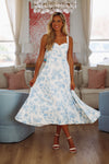 We love the floral print on this maxi dress featuring a sweetheart neckline and belt.
