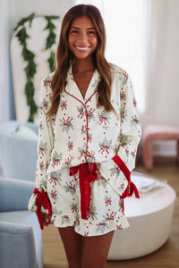 Holly Branches Pajama Shorts - Cream