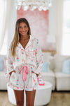 I Do Satin Pajama Shorts - Ivory and Pink