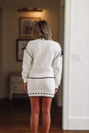 This cable knit mini skirt with contrasting ribbon detail is so stylish!