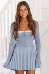 This cardigan is so cute! We love the button detailing and ties at the wrists. It goes great with the If You Care Crop Top and Skirt Set that we also sell!