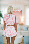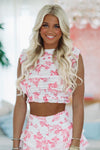 In Bloom Ruffle Floral Crop Top - Pink and White