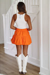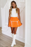 How cute is this mini skirt! We love the bow detail and the balloon hem! Perfect for gameday!