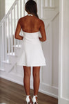 This mini cocktail dress has jewel bow details down the center and a fun halter cut!