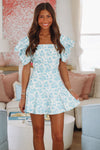 This romper dress by Sincerely Ours has puff sleeves and a cute jungle animal print.