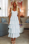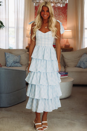 This plaid seersucker material gives this tiered midi dress such a feminine look.