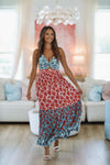 How adorable is this floral maxi dress? We love the cut out detail and tiered ruffle detailing. The boho print is giving us designer vibes without the designer price tag. We love the cut out detail.