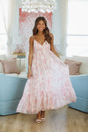 This pink floral maxi is perfect for any event! We love the adjustable shoulder straps.