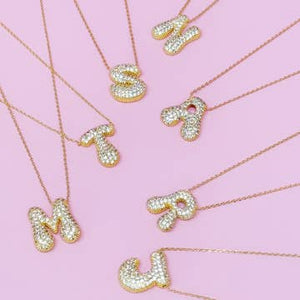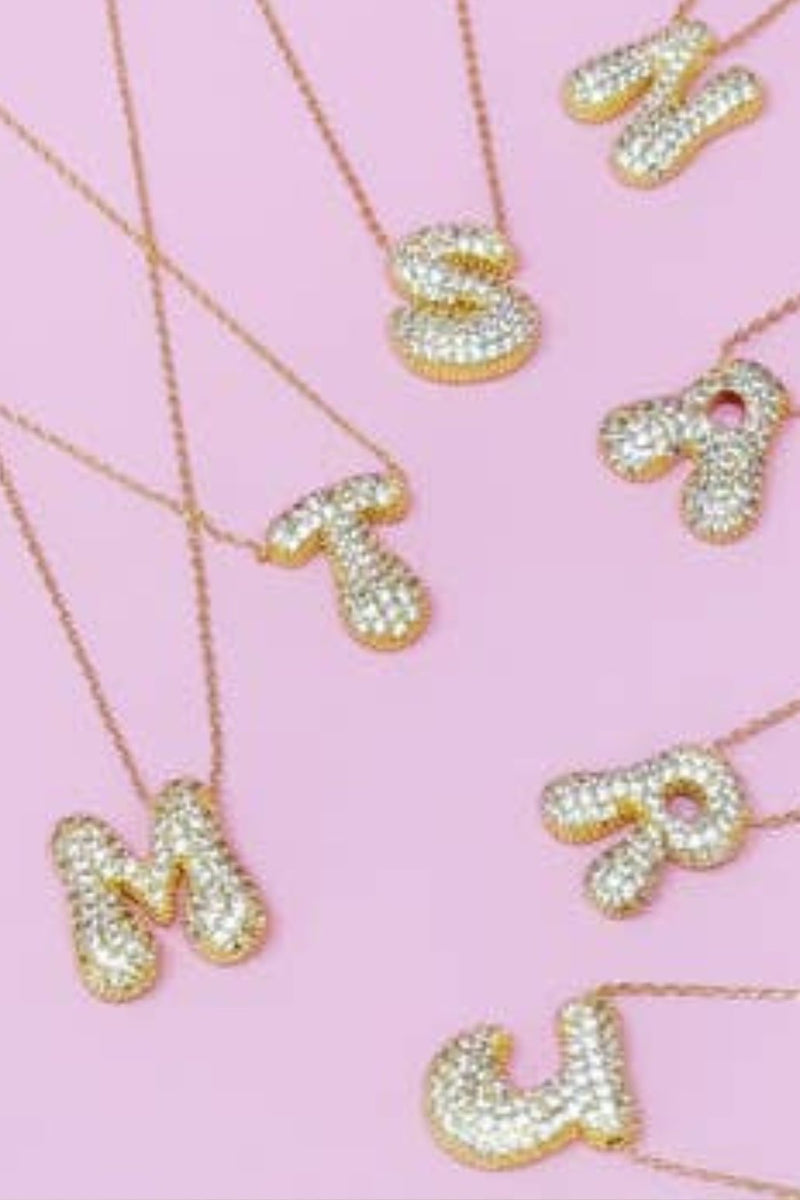 Let Me Sparkle Bubble Letter Necklace - Gold