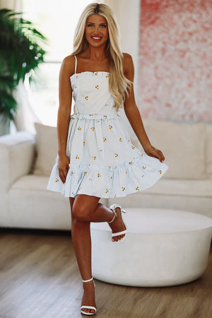 Love Blooms Here Mini Dress - Light Blue (FINAL SALE)