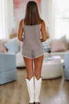 This playful brown and white gingham tie vest paired with boxer-style shorts is perfect for concerts and casual outings. The lightweight set keeps you cool while adding a fun, stylish twist to your look. Easy to mix and match, it’s a charming choice for days when you want to stand out with effortless flair.