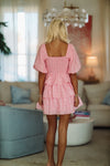 This two tiered ruffle mini dress with smocked bodice and bubble skirt! We also love the puff sleeves and small floral print!