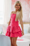The perfect summer dress! The strapless tube dress is adorned with a ruffled layer skirt!