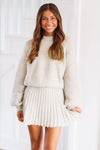 This knit cropped sweater from Sincerely Ours will keep you warm. It matches perfectly with the Millie Knit Skirt that we also sell.
