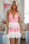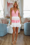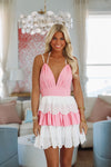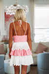 This mini is so cute with the contrasting tiered skirt. We love the eyelet material and ruffles of gingham print!