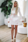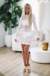 This floral designed backless mini dress is stunning! It can be worn with a bodysuit as a dress or with a swimsuit as a coverup!