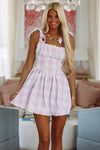 Off To Charleston Mini Dress - Lavender Purple and White