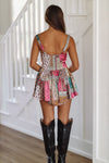 Paisley Patch Mini Romper Dress - Green, Purple and Yellow