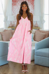 Palm Springs Weekend Midi Dress - Pink and Cream