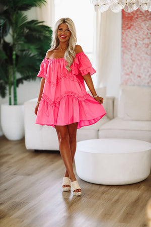 Park Picnic Babydoll Mini Dress - Fuchsia Pink