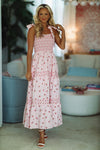 This maxi is great for an everyday dress! We love the flowy silhouette and adjustable tie shoulder straps. The floral print is so fun!