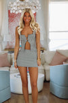 This gingham skort has cute lace detailing at the waist. It goes perfectly with the Right on Beat Top that we also sell.