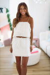 You'll be ready to rock the runway in this feathered crop top from Sincerely Ours. It matches perfectly with the Runway Ready Mini Skirt that we also sell.
