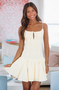 Brighten your day with the Sadie Mini Dress in cheerful yellow and white stripes. This playful dress features delicate lace trim that adds a sweet, flirty touch. Perfect for sunny outings or casual gatherings, its fun design keeps your look fresh and lively. Embrace effortless style with a dress that’s as joyful as you are.